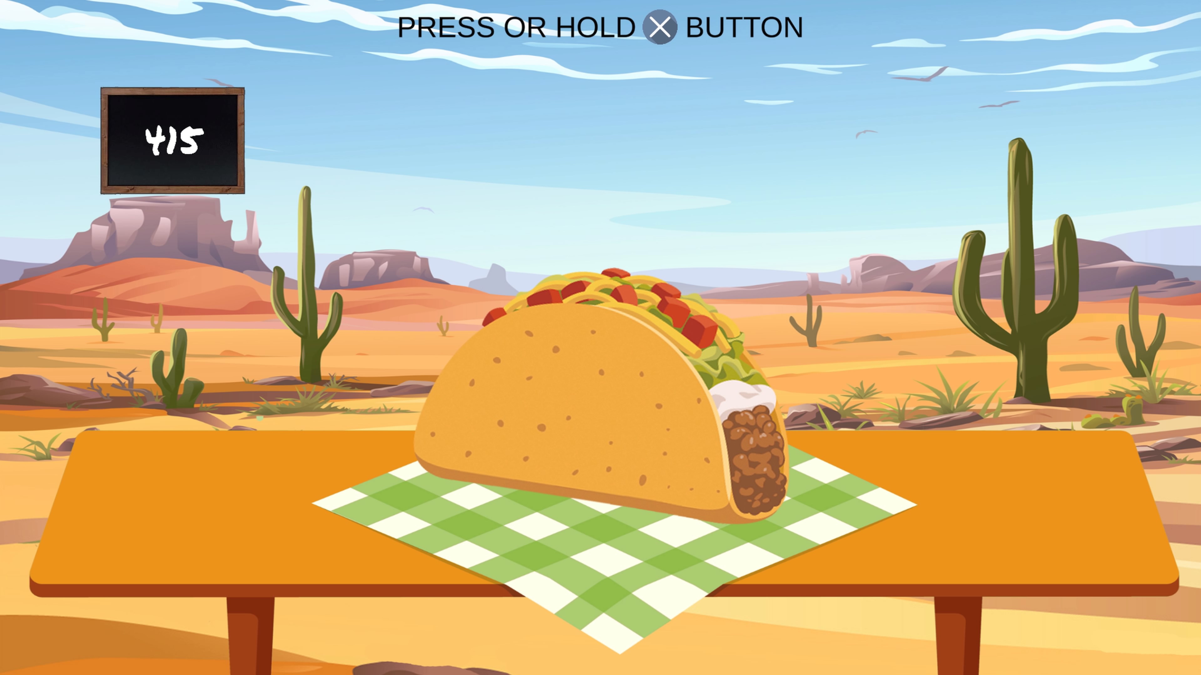 The premise of The Jumping Taco is simple. Hold down the R1 button (on the PS4/PS5) to gradually increase your score by having your delicious taco jump on the spot for you. I couldn’t tell you what magic allows the insentient being to perform such a feat, but there we go.